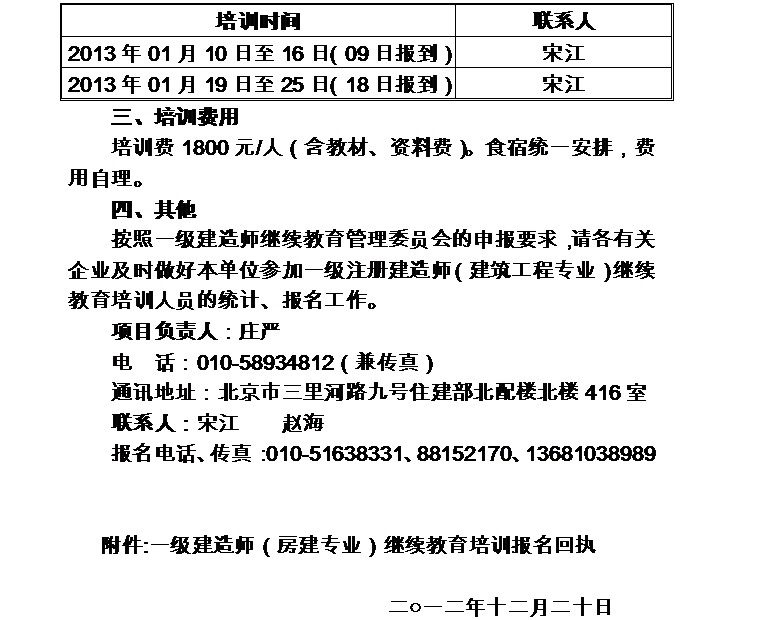 附件:一级建造师(房建专业)继续教育培训报名回执(可下载)