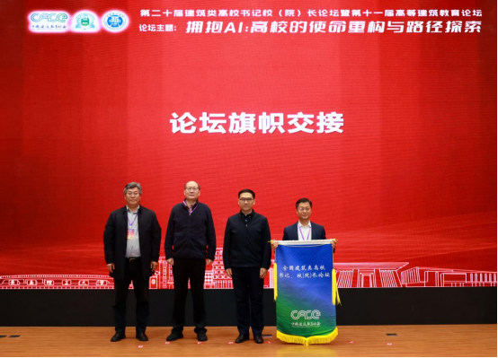 主论坛阶段,北京建筑大学校长张大玉、山东建筑大学校长于德湖、安徽建筑大学校长蔡国军、青岛理工大学校长张凯、西安建筑科技大学副校长陈荣、沈阳建筑大学副校长王凤池围绕智能建造、城市科学、AI赋能发展等前沿内容,分别作了题为“聚焦行业变革,保持战略定力,土木建筑类拔尖创新人才培养的新实践”“基于AI赋能的校园治理体系重塑”“提高站位,服务大局:AI赋能地方土建类高校跨越式发展的探索与实践”“构建建筑教育新生态,推进土建类一流应用型人才培养创新发展”“深化教学改革,建设一流本科——人才培养提质创新的西建大探索”“人工智能时代建筑类高校的重构压力与升级路径”的主旨报告。