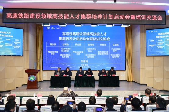 卢春房、王景全、申雪峰、桑应豪、黄志良、焦胜军共同启动高速铁路建设领域高技能人才集群培养计划。