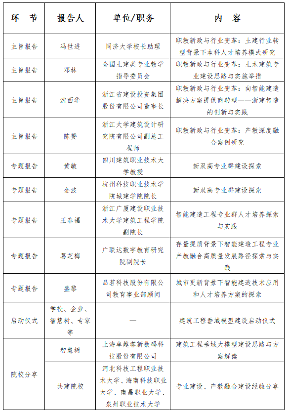 全国应用型本科、职业本科院校校领导、教务处长、二级学院院长及专业负责人;土木建筑类教学指导委员会专家、行业协会、协会领导;建筑、房地产、智能制造等领域企业高管、技术总工、人力资源负责人;对土木建筑领域垂类大模型、数字化教学资源库建设感兴趣的研究人员与教师。